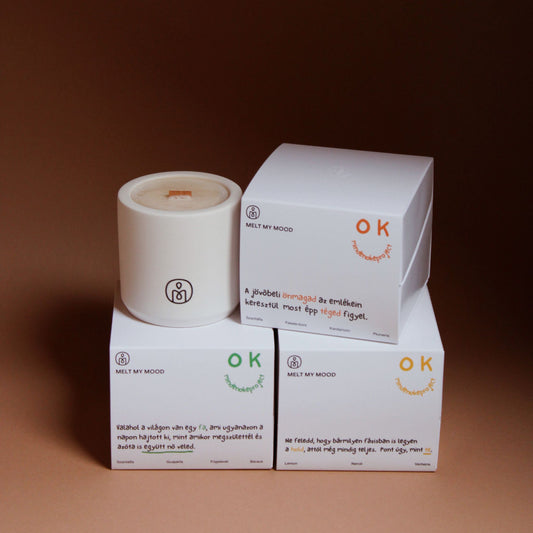 A Melt My Mood x Minden Oké Project limitált szójagyertyái illatos élményt és inspiráló üzeneteket nyújtanak, emlékeztetve a belső teljességre.